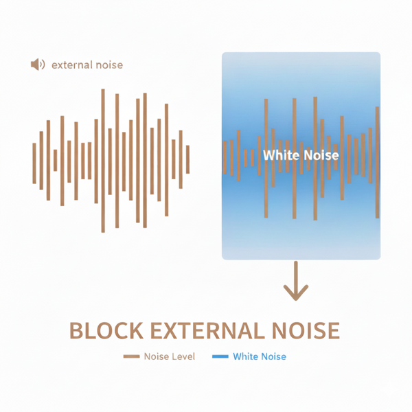 ✅ Backed by global clinical studies showing that white noise helps both adults and babies sleep better. White noise acts like a gentle sound blanket that smooths out your environment. By adding a steady background sound — like rain, ocean waves, or soft static — it masks sudden noises such as traffic, barking, or conversations. This makes unexpected sounds less noticeable, so your brain stays relaxed instead of reacting. The result: you fall asleep faster, stay asleep longer, and enjoy a more natural, uninterrupted rest.